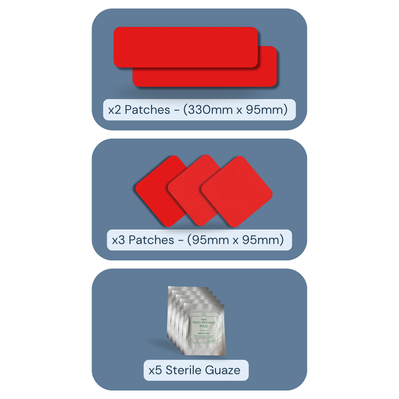 - 3 × 95mm square patches with rounded corners to prevent lifting